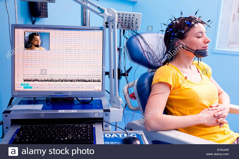 An electroencephalogram (EEG) is a test that detects electrical activity in your brain using small, flat metal discs (electrodes) attached to your scalp. Your brain cells communicate via